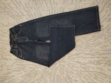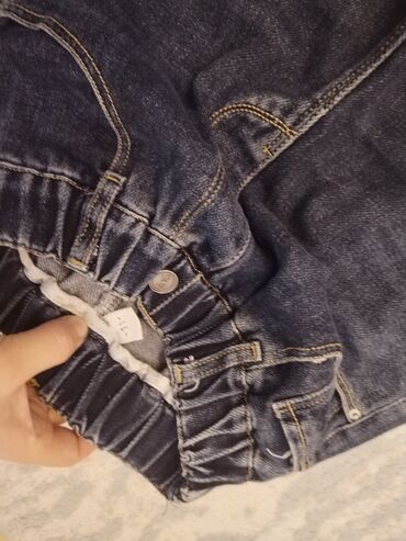 Oğlan üçün qara rəngli baggy jeans şalvar - Model: rahat “baggy” kəsim - Material: denim (uzanan elastik bel) - Rəng: tünd qara, yüngül solğun effekt və dekorativ cırıqlar - Bağlanma: iplə yığma (...