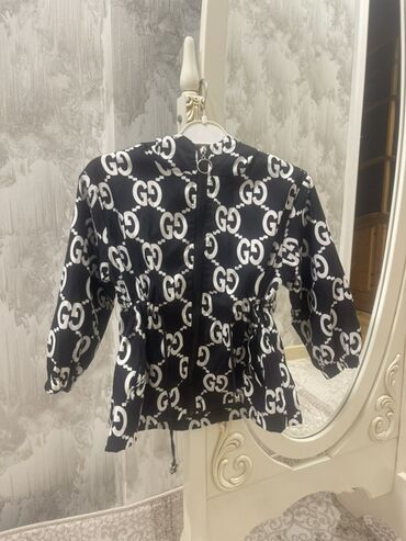 - Model 2: Tünd mavi (qara tonlu) fon üzərində ağ “GG” printli. Kapüşonlu, ön hissədə fermuarlı. Yan ciblər. Bel hissəsində iplə yığma (stoperli), aşağı hissəsi yüngül ətəkvari kəsimlə.
