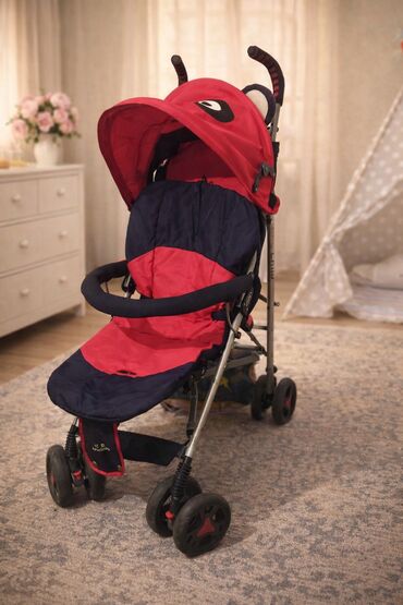 Uşaq arabası – yüngül və yığıla bilən “umbrella” tip. Xüsusiyyətlər: - Rəng və dizayn: boz-qırmızı, ulduz naxışlı oturacaq və örtük - Geniş günəşlik (qatlanan kapüşon) – günəş və küləkdən qoruyur ...
