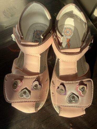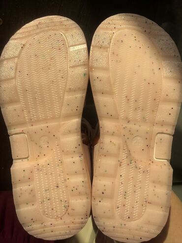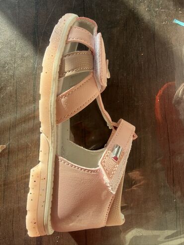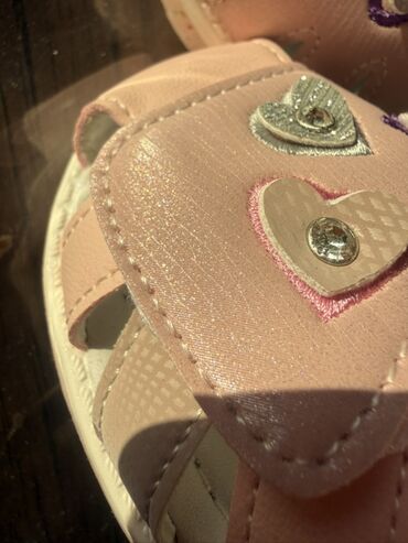 Uşaq sandaleti – qızlar üçün - Rəng: açıq çəhrayı - Üst hissə: parlaq dekorativ zolaqlar və rhinestone (daşlı) lentlər - Ön hissə: iki enli ribalı qayış və üstündən parıltılı nazik kəmərlər - Yan ...