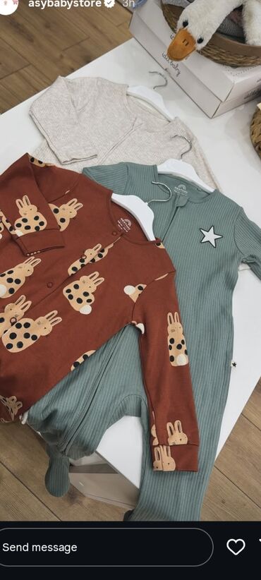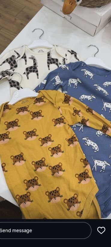 - Modellər: heyvan prinsli bodilər (zürafa, dalmatin iti, pələng başı), xırda naxışlı kombinezonlar, qabartmalı xətli (rib) kombinezonlar, dovşan deseni olan düyməli üst