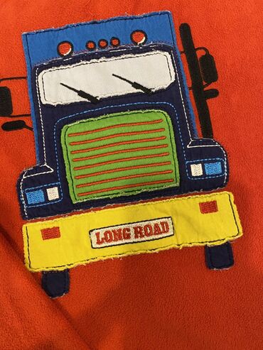 - Ön hissə: böyük yük maşını appliqəsi və “LONG ROAD” yazısı