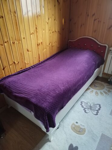 - Tək nəfərlik çarpayı: ağ korpus, yumşaq başlıq qırmızı rəngli dekorla. Standart tək nəfərlik ölçü üçün (təxmini 90x190 sm döşək ölçüsünə uyğun). Aşağıda hündür ayaqlar sayəsində təmizlik rahatdır.