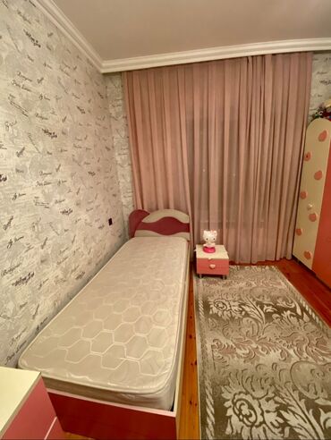 - Tək nəfərlik çarpayı: başlıq hissəsi dalğalı dizaynda, çəhrayı–krem rənglər. Üstündə uyğun ölçülü döşək.