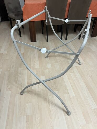 - Stabil metal stend: qatlanan X formalı konstruksiya, tənzimlənən bağlama qolları və fiksator düymələri ilə vannanın möhkəm bərkidilməsi.