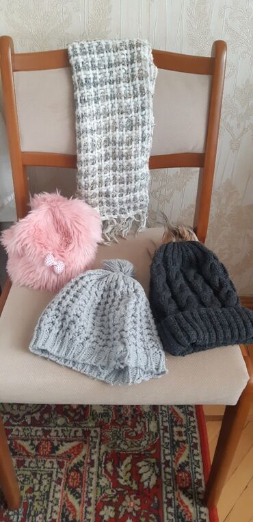 Женские головные уборы. Все новые, цены разные. 1) Серая кепка, новая, из твида, теплая, на подкладке. 80%шерсть,20% полиэстер. Цена 35 AZN 2) Кепка пудрового оттенка, новая, стандартный размер. Це...