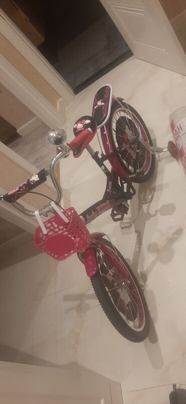 Uşaq velosipedi – Hello Kitty dizaynlı, parlaq çəhrayı rəng. Xüsusiyyətlər: - Təxmini 20düym təkərlər (rəngli muncuqlu şin saplamaları ilə) - Ön səbət (çəhrayı), kiçik əşyalar üçün rahat - Zəncir ...
