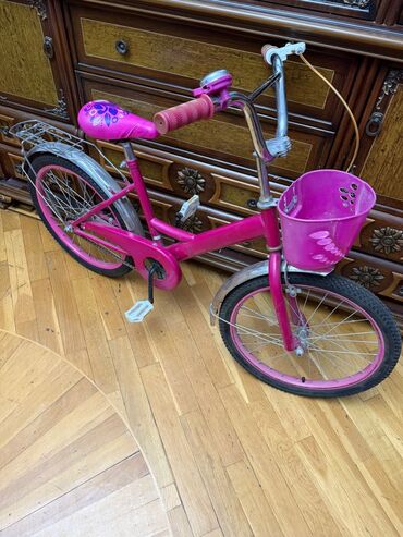 Uşaq velosipedi – 16 düym təkərlər Xüsusiyyətlər: - Çəhrayı-ağ dizayn, çiçək naxışları - Ön səbət - Arxa baqaj rəfi və arxa əyləc işığı reflektoru - 16" şinlər, ağ yanaklı, naxışlı disk örtükləri ...