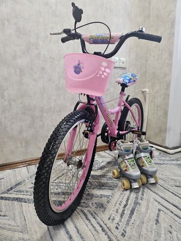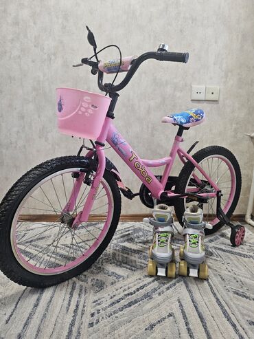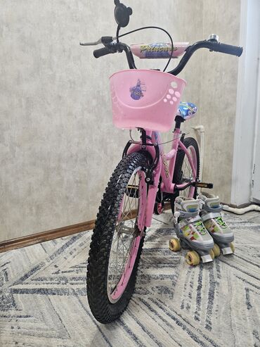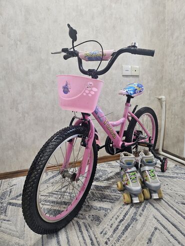 Uşaq velosipedi və dördtəkərli rolik dəsti.konki ancag evde surulub.velosiped 2-3 defe heyetde surulub.istifade edilmeyib deye tekeri bosalib basqa problemi yoxdur.