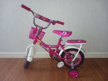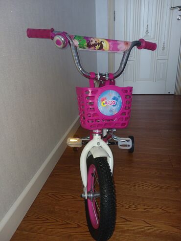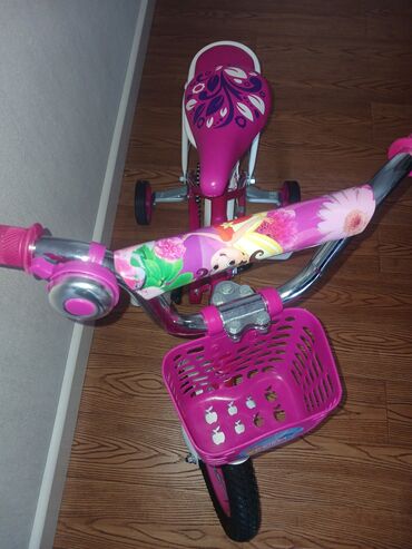 Uşaq velosipedi – “Салют” brendi, parlaq çəhrayı rəngdə. Xüsusiyyətlər: - Ön tərəfdə səbət və üzərində naxışlı dekor stikerləri - Xrom sükan, mexaniki siqnal/zəng və yan güzgü - Möhkəm polad çərçi...