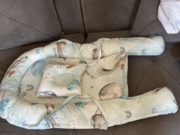 Planet və kosmos mövzulu naxışları olan bu uşaq yatağı dəsti, körpənin rahatlığı üçün nəzərdə tutulmuşdur. Dəstə yataq, yastıq daxildir. Yataq, körpənin təhlükəsiz və rahat yatması üçün yan tərəfləri yumşaq, yastıq isə körpənin başını dəstəkləmək üçün xüsusi olaraq hazırlanmışdır. Açıq rəngləri və şən kosmik motivləri ilə bu dəst körpə otağına müsbət enerji qatır.