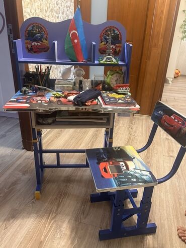 - Ölçü təxmini: uşaq boyuna uyğun orta ölçülü stol-stul; stul arxalığı Cars şəkilli