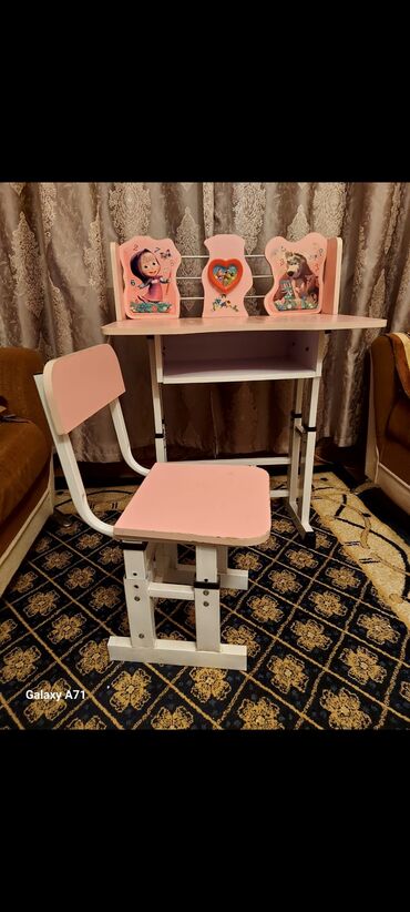 - Ölçü və rahatlıq: həm stol, həm də stulun hündürlüyü mexaniki tənzimlənir (boltlu konstruksiya), uşağın boyuna uyğunlaşdırmaq mümkündür