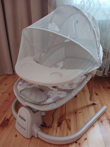 Krem rəngli, yüngül materialdan hazırlanmış uşaq yelləncəyi, yeni doğulmuş körpələr üçün nəzərdə tutulub. Yelləncəyin üzərindəki tor ağcaqanad və digər həşəratlardan qorunma təmin edir. Yelləncəyin aşağı hissəsində "Kidilo" brendi qeyd olunub. Bu yelləncək uşaqların rahatlıqla yuxuya getməsi və valideynlərin əlavə köməyinə ehtiyac olmadan istirahət etməsi üçün uyğundur.