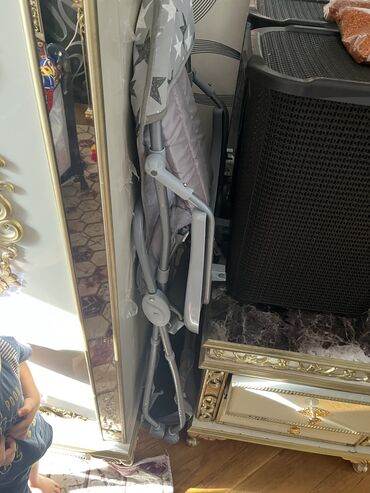 Uşaq yemək kreslosu - Rəng: ağ‑boz, qızılı detallarla - Geniş
