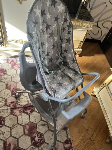 Uşaq yemək kreslosu - Rəng: ağ‑boz, qızılı detallarla - Geniş, çıxarılan ikiqat yemək masası (stəkan yuvası var) - Yumşaq, rahat oturacaq və bel üçün 5 nöqtəli təhlükəsizlik kəməri - Arxalıq tənzi...