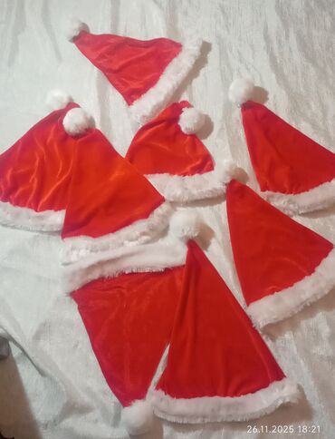 Uşaq üçün Yeni il geyim dəsti və Şaxta Baba papaqları Məhsul təsviri: - Parlaq qırmızı məxmər/parça materialdan hazırlanmış uşaq Yeni il kostyumu. - Ağ süni tüklə haşiyələnmiş uzunqol don/skirt-li...