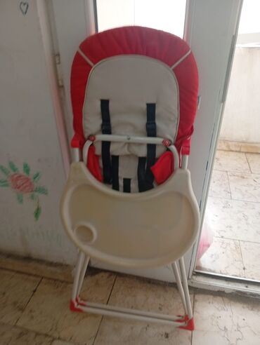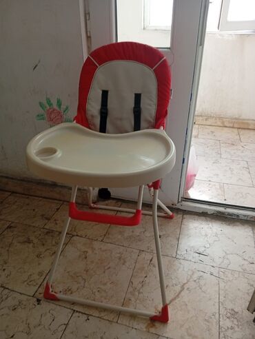 Uşaq yemək stulu - Rəng: ağ və qırmızı - Geniş, çıxarıla bilən plastik süfrə (asan yuyulur) - Yumşaq arxa yoxdu - Ayaqlar üçün alt dayaq - Sabit metal karkas, sürüşməyə qarşı ucluqlar - Yanlarda t...