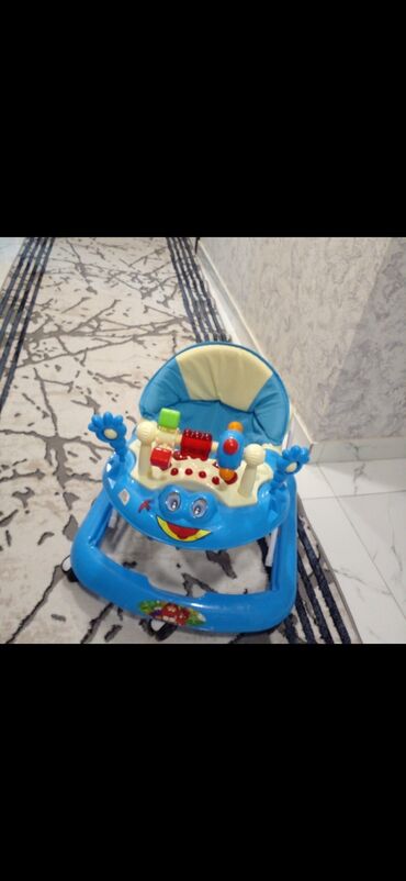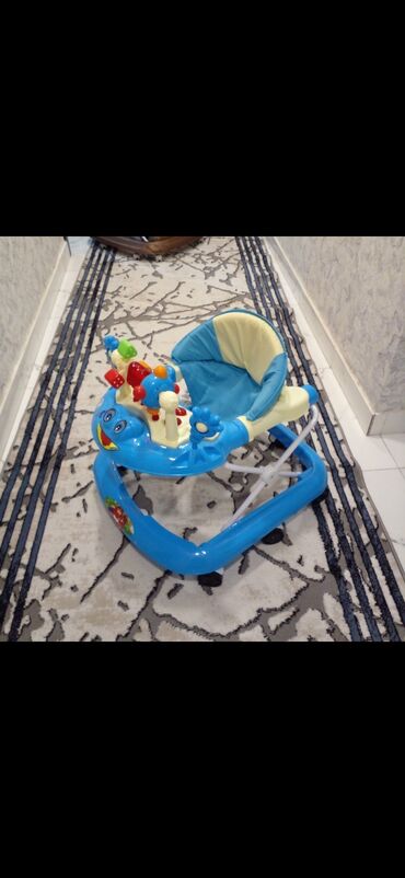Bir ədəd Babywalker uşaq gəzdirəni (walker). Xüsusiyyətlər: - Rəng: mavi çalarlarında, çəhrayı oturacaqla - Yumşaq, yüksək arxalı oturacaq – körpənin belini dəstəkləyir - Ön paneldə interaktiv oyu...