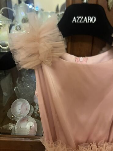 Uşaq üçün ziyafət/libas – zərif tüllü don - Rəng: açıq pudra-çəhrayı - Model: ətəyi çoxqatlı tül, yuxarı hissə incə parıltılı; yuxarıdan aşağıya qədər büzgülü qatlar - Bəzək: bel hissəsində həcmli...