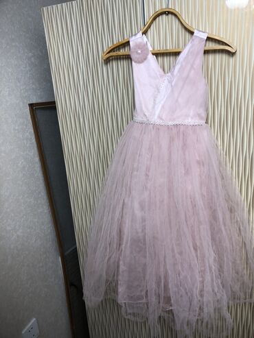 Bir defe toya geyınılıb Uşaq üçün zərif ziyafət/gecə geyimi - Rəng: Pudra/solğun çəhrayı - Model: Tüllü ətəkli, A-kəsim, dizə yaxın uzunluq - Üst hissə: Ön tərəfdə büzgülü korse detalları, enli ...