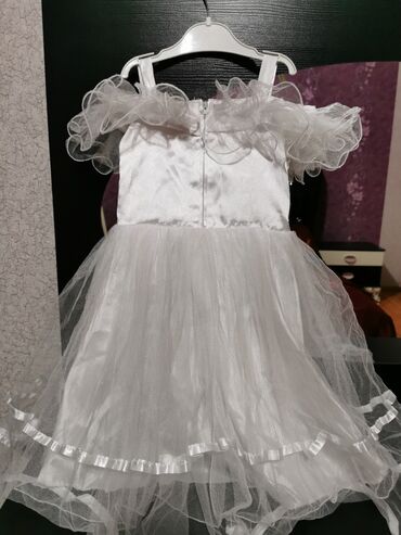 Məhsul: Qız uşaqları üçün bayram/şənlik donu Təsvir: - Rəng: Qar ağ - Stil: Klassik və zərif A-kəsim; qabarıq, çoxqatlı ətək hissəsi ilə fırlananda hacimli effekt yaradır - Parça: Yüngül, şəffaf ü...