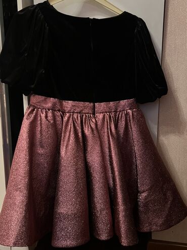 Qara məxmər qız uşağı donu – The Children’s Place - Parça: yumşaq məxmər, elastik - Rəng: dərin qara - Bəzək: bütün səthdə xırda qızılı və gümüşü nöqtə printi (parıltılı effekt) - Model: qısaqollu...