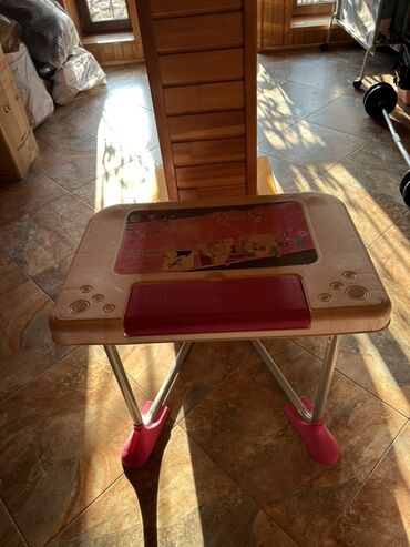 Uşaq üçün yazı və dərs masası - Rəng: çəhrayı - Üst hissə və arxa panel uşaq mövzulu naxışlarla bəzədilib (prenses illüstrasiyaları, rəqəmlər və şəkillər). - Arxa paneldə mexaniki hesablama çubuğu...