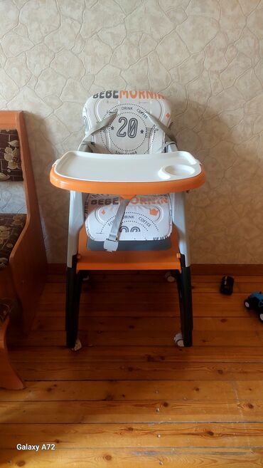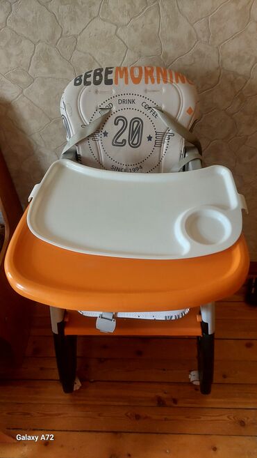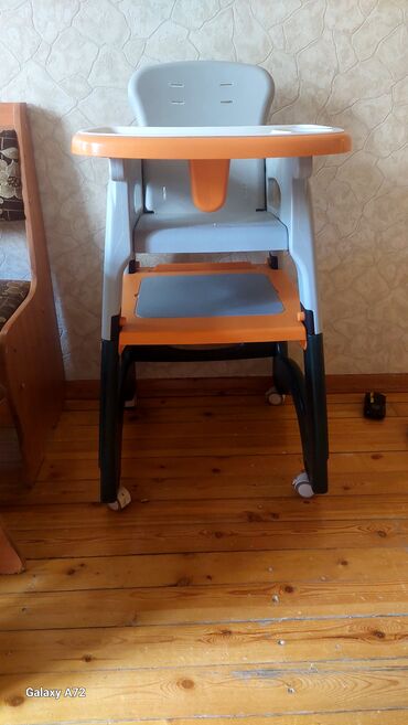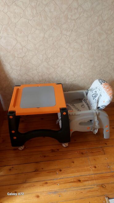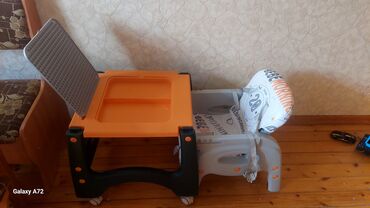 Uşaqlar üçün çevrilə bilən yemək stulu və stolu. yemək stulu kimi istifadə olunur, həmçinin ayrılıb aşağı stul və uşaq masası kimi işlənir.