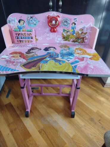 Uşaq üçün yazı masasının və stulun dəsti - Mövzu: nağıllı şahzadə printli, parlaq çəhrayı dizayn - Komplekt: tənzimlənən masa + arxalı-stullu stul - Material: möhkəm metal karkas, laminasiya olunm...