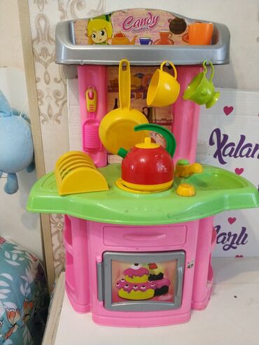 Çəhrayı və yaşıl rənglərdə olan bu oyuncaq mətbəx dəsti uşaqlar üçün rol oyunları üçün nəzərdə tutulmuşdur. Dəstə qazan, çaydan, fincanlar və digər mətbəx ləvazimatları daxildir. Üst hissəsində "Candy" yazısı olan dekorativ arxa fon, həmçinin fırın qapısı ilə təchiz olunub. Bu oyuncaq dəst uşaqların xəyal gücünü inkişaf etdirmək və mətbəx bacarıqlarını öyrənmək üçün əla vasitədir.