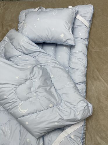 Uşaq üçün kalyaska içliyi-yorğan,döşek,yastıq. Tezedir klokunda Yorğanin uzunu 95sm,eni-83 sm. Döşek uzunu 80 sm,eni 50 sm. qiymet -20 manat.