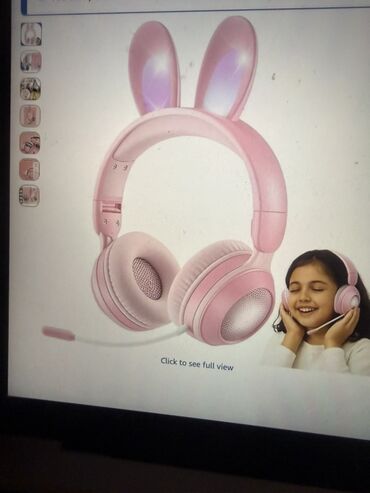 Qulaqlıqlı mikrofonlu uşaq/yeniyetmə üçün bluetooth qulaqlıq – dovşan qulaqlı LED dizayn, çəhrayı.