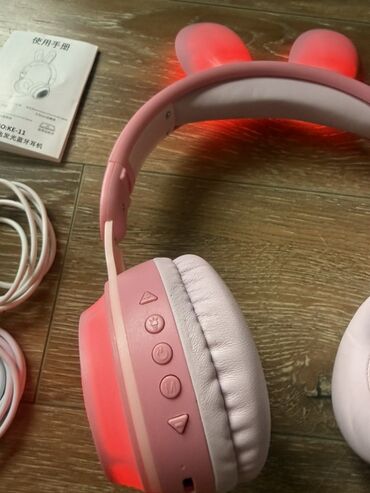 Bluetooth-наушники для детей/подростков с микрофоном и светодиодной подсветкой в виде заячьих ушек, розового цвета.