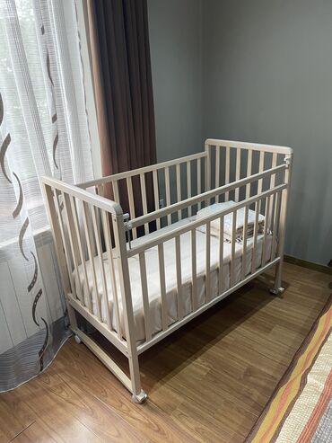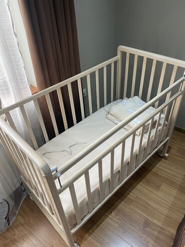 Uşaq otağı üçün dəst: beşik və rəfli şkaf