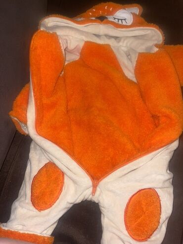 - Dizayn: narıncı-açıq krem rənglər, kapüşonda yuxulu tülkü üzü və qulaqlar; sinədə “HAPPY FOX” yazısı və tülkü naxışı; diz hissələrində narıncı yamaq detalları