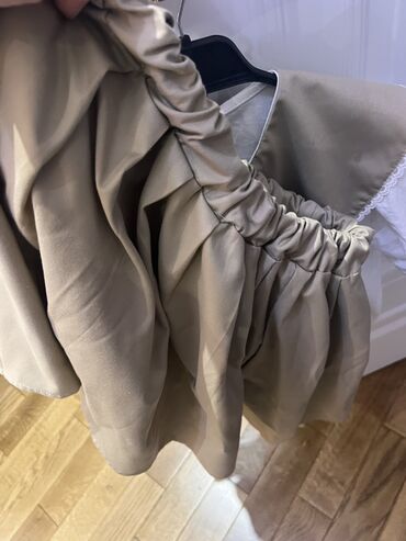 - Alt: Bej rəngli ətək.Bel hissəsi rezinlidir, rahat oturuş verir. Ətək tam dairəvi kəsimli, büzgülü/plisseli quruluşa malikdir.