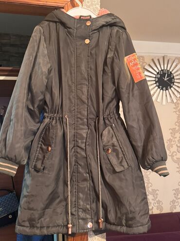 YFK uşaq/yeniyetmə parkası - Rəng: zeytun-yaşıl - Ölçü etiketi: 146/152 - Model: kapüşonlu parka, kapüşonda süni kürk haşiyəsi - Bağlanma: ikili – içəridə möhkəm fermuar, üstündə düyməli-klapanlı ...