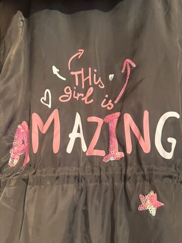 - Arxada yazı və bəzək: “This girl is AMAZING” – çəhrayı/ağ çap və parıltılı payet detalları, ulduz aplikasiyası