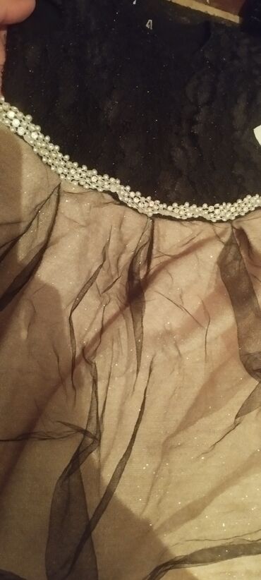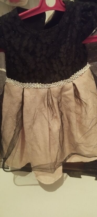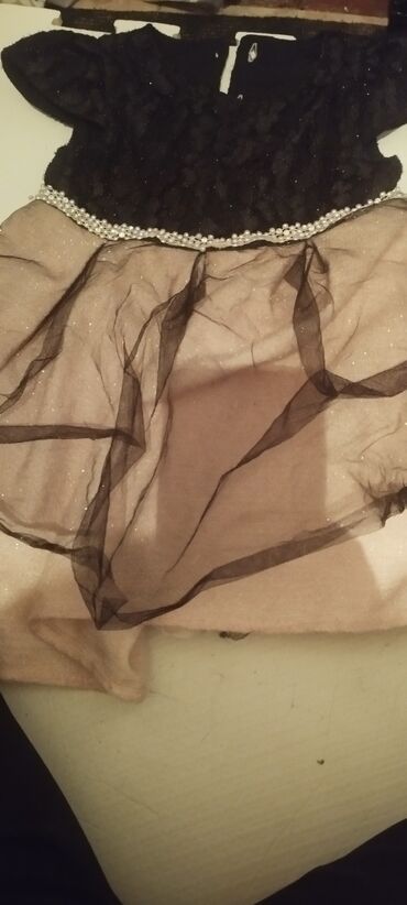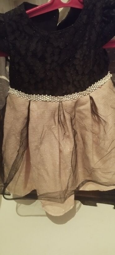 Uşaq üçün zərif ziyafət/libas donu - Rəng: krem/şampan - Model: tüllü A-kəsim ətək, yüngül və həcimli siluet - Üst hissə: şəffaf tor parça ilə illüziya yaxalıq, ürək formalı kəsim - Bəzəklər: sinə...