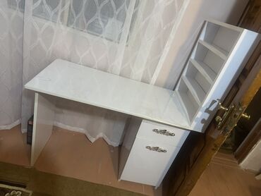 Dırnağ masası - Material: metal karkas + ağac teksturalı MDF/layihə taxtası - Rəng: təbii ağac üstü, qara metal çərçivə - Sağ tərəfdə 3 geniş çekmece – metal tutacaqlar, sənədlər və ofis ləvazimat...