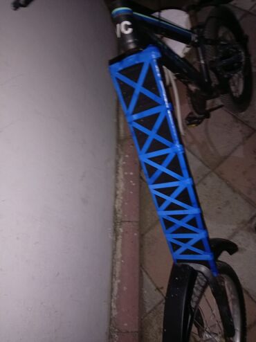 Uşaq velosipedi – “Champion” dizaynlı, mavi-qara rəng çalarlarında. - Təkər ölçüsü təxminən 20 düym - Ön və arxa palçıqlıq - Yüksək, rahat sükan və yumşaq dəstəkli oturacaq - Zəncir qoruyucusu - Ar...