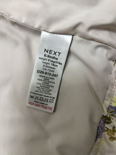 - Ölçü: 6–9 ay (təxmini boy: 74 sm, çəki: 9½ kq/21 lbs – etiketdə göstərilib)