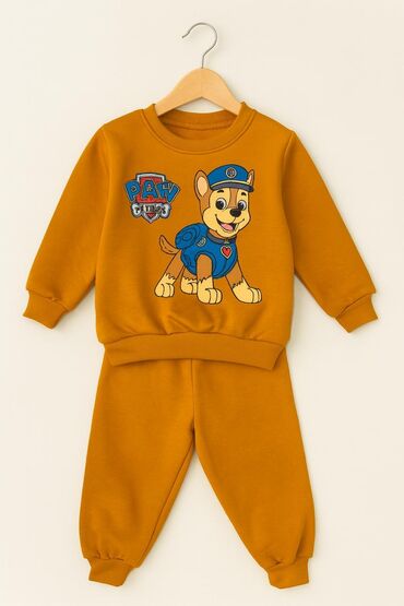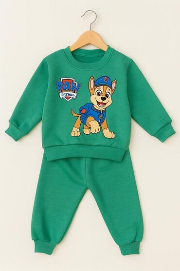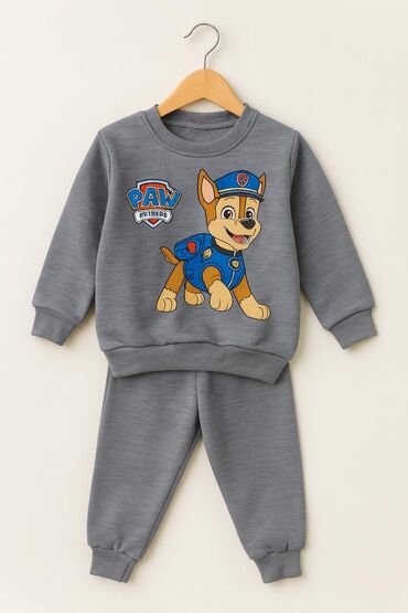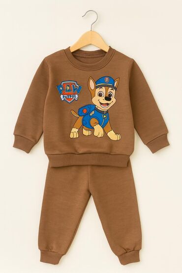 Uşaq üçün iki parçalı dəst - Rəng: açıq krem - Material: yumşaq, isti məxməri/flis toxuma - Dəst: kapüşonlu kofta + şalvar - Kofta: ön hissədə düyməli bağlanma; üzərində “Little pups like to play”...