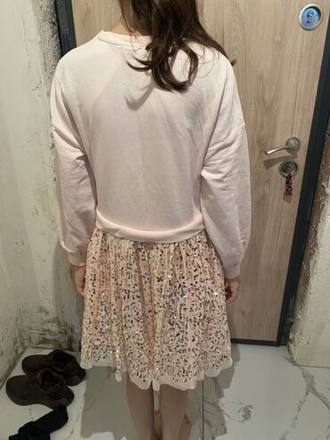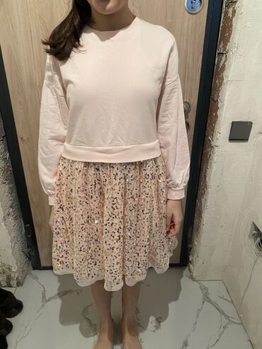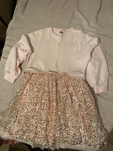 Uşaq üçün paltar – şifon və tül kombinasiyalı, A-kəsimli tutu etekli model. Razmeri uygun gelemdi deye sataəiram - Rəng: açıq şaftalı/çəhrayı tonları - Üst hissə: parıltılı payetlərlə bəzədilmiş, ...