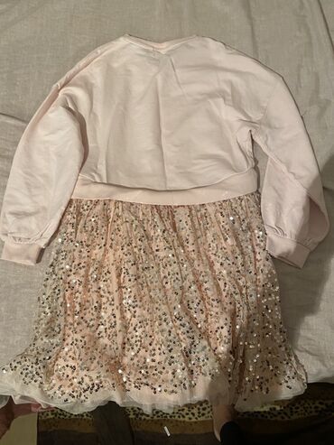 Brend: Lovi Ölçü: 100 (təxmini boy 95–105 sm üçün) Məhsul: Zərif uşaq paltarı, açıq şaftalı/çəhrayı tonlarında. - Material: üstündə nazik tül qatları, içdə yumşaq astar. Tül üzərində xırda qızılı ...
