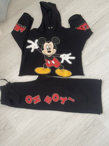 Uşaq geyimləri dəsti – ayrı-ayrılıqda 1) Ağ idman üslubunda üst geyimi - Tam ön fermuarlı - Yüksək yaxalı - Hər iki qolda üç qara zolaq - Uzunqol - 10 AZN (şəkildə göstərilib) 2) Qırmızı uzunqol ...