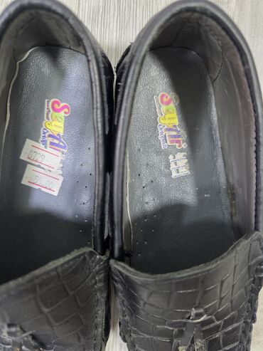 Məhsul: Oğlan uşağı mokasinləri ölçü 34 - Material: Yumşaq dəri üst hissə, dəri içlik - Rəng: Qara - Dizayn: Klassik mokasin kəsimi, kvadratvari burun; üst hissədə naxışlı tekstura - Bəzək: Metal ...