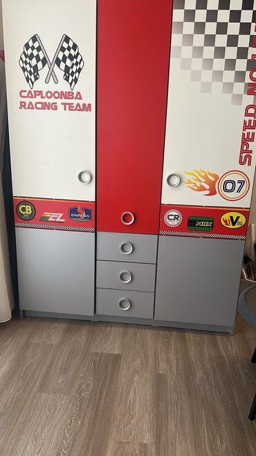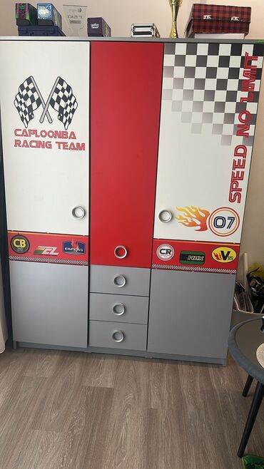 Uşaq/yeni yetmə otağı üçün tematik geyim dolabı – “Racing Team” dizaynı