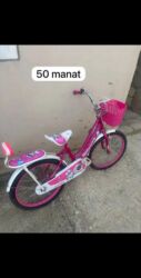 Uşaq velosipedi satılır. 20-lik təkər ölçüsü. Rəng: bənövşəyi-qırmızı-ağ kombinasiya. Ön səbətlidir, arxa baqajı var. Əyləclər əl əyləci tipidir. Zəncir qoruyucusu mövcuddur. Komfortlu oturacaq, ya...